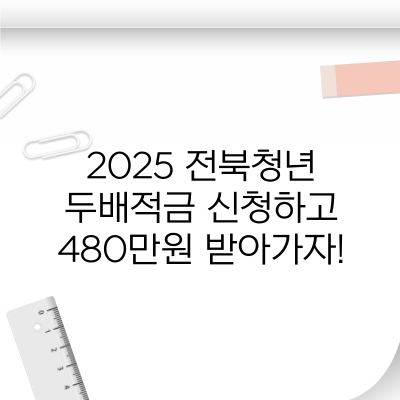 전북청년 두배적금은 청년들의 경제적 자립을 돕는 강력한 지원제도예요. 매달 10만 원을 저축하면 같은 금액을 추가 지원받아, 2년 후 480만 원 이상의 자산을 형성할 수 있는 기회죠.